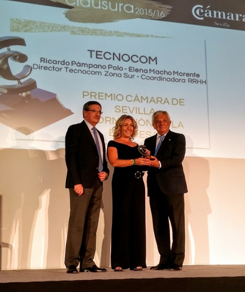 La Escuela de Negocios de La Cámara de Comercio de Sevilla ha galardonado a Tecnocom en reconocimiento a su participación en las actividades formativas de la Cámara y por su contribución a que la formación sea un eslabón clave para el buen funcionamiento de los negocios.