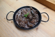 Quienes prefieren guisos y platos más tradicionales también tienen muchas posibilidades de elección, como el guiso de pollo ecológico tikamasala aderezado con curry vadouvan (curry francés) y acompañado con chalotas, mostaza y cúrcuma de La Brochette, el arroz con costillas de cerdo ibérico, pollo de corral y salsa de ñora y una selección de verduras como base, de DP Tapas, los clásicos huevos fritos de corral acompañados de pisto con las mejores verduras de la huerta de Granja Malasaña o un plato mix de productos ibéricos, cortados en taquitos, aderezados con mahonesa o salsa ali oli, de Arturo Sánchez.