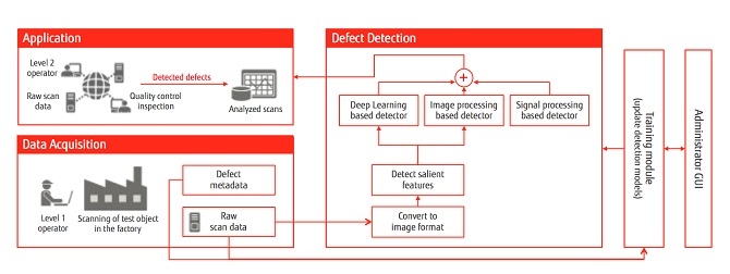 Fujitsu ha desarrollado una innovadora tecnología de Inteligencia Artificial (IA), que mejora significativamente el control de la calidad y la detección de defectos en los procesos de fabricación. Analiza y diagnostica automáticamente los datos de exploración ultrasónica de inspección no destructiva (NDT) en pocos minutos, ayudando a identificar los problemas potenciales en los procesos de fabricación de una manera más rápida. Utiliza un nuevo marco de Inteligencia Artificial (IA) que combina técnicas de procesamiento de imágenes y señales con la tecnología de aprendizaje profundo, para resolver complejos problemas de calidad en el mundo industrial.