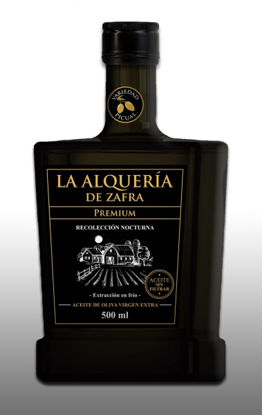 En el embotellado manual no se emplea ningún filtro, algo que se puede comprobar por su aspecto denso, su sabor más intenso y su decantación natural. El diseño de las botellas ha sido perfectamente estudiado: su tamaño es de 500 ml, con cristal de color oscuro y letras en color dorado; logrando transmitir la extraordinaria calidad del aceite y sus dos grandes valores: recolección nocturna y embotellado sin filtrar.