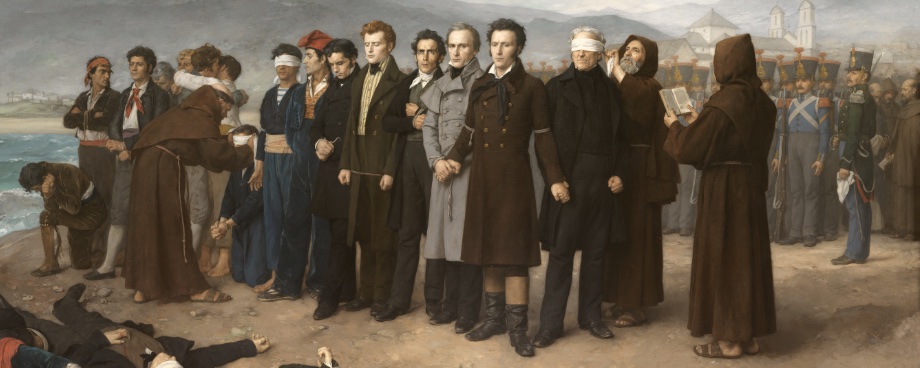 La última carta a su esposa, adquirida por el Congreso poco antes del encargo del cuadro, es testimonio elocuente de su humanidad valiente y generosa. Él y sus compañeros, entre ellos un antiguo presidente de las Cortes, Manuel Flores Calderón, un ex ministro de Guerra, Francisco Fernández Golfín, situados a su lado, y el teniente británico Robert Boyd, que había combatido, como Lord Byron, por la libertad de Grecia, fueron fusilados sin juicio previo por orden de Fernando VII en 1831. Muchos de los ejecutados habían luchado heroicamente en la guerra de la Independencia contra los franceses, de modo que unían, en su mérito, la defensa de la integridad de la nación y la de las libertades que debían fundar la legitimidad del gobierno fernandino.