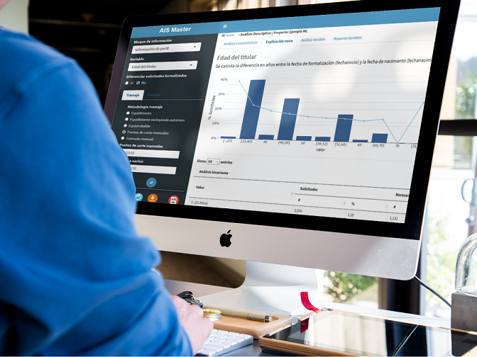 Un modelo machine learning aprende de los datos que maneja. Si la información no es coherente, el modelo extraerá conclusiones incorrectas, algo inaceptable cuando sus resultados afectan decisiones como la concesión de créditos. AIS Master facilita este análisis exploratorio de los datos y genera automáticamente la documentación del análisis de las variables, llegando a reducir radicalmente el tiempo empleado -de 3 semanas a 1 hora en modelos de 1.000 variables.