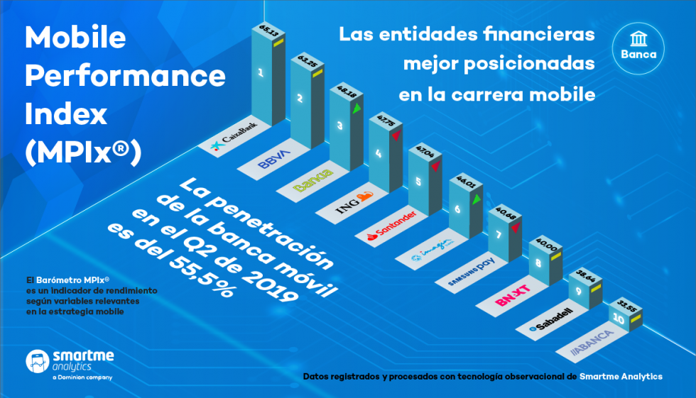 El índice, elaborado por la compañía de tecnología observacional Smartme Analytics, monitoriza en tiempo real el uso de más de 90 aplicaciones financieras para elaborar trimestralmente un ranking con las mejores aplicaciones bancarias según su rendimiento. Para su elaboración utiliza un algoritmo que permite identificar las entidades mejor posicionadas en base a variantes como: cuota de mercado, tiempo de uso al día o por sesión, valoración en los stores, e incluso penetración en grupos determinantes como los Millennials y la Generación Z.