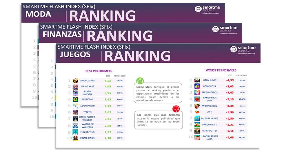 El informe completo muestra tanto nuevos competidores que consiguen un rápido crecimiento en poco tiempo como las variaciones que se producen entre las aplicaciones ya consolidadas. En este punto resulta interesante constatar que la app de Instagram, aún siendo ya de uso masivo en la población española, continua con muy buenos ratios de crecimiento. Además, por primera vez, se muestra también la lista con las aplicaciones que han obtenido peores puntuaciones en el ránking, es decir, las que han empeorado su posición en cada sector como Briefing, Movistar+, Privalia.