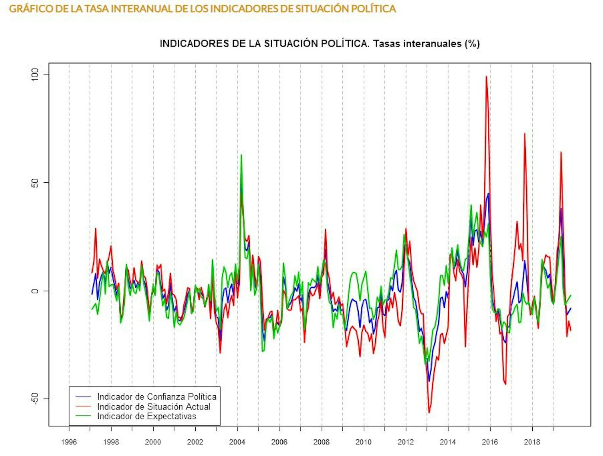 Confiamos poco en la política, confiamos poco en la situación actual y las expectativas de futuro son similares. Si observamos los datos del barómetro del CIS, desde 1996 la desconfianza hacia la política es casi una situación permanente, solamente superada en momentos muy puntuales por otros aspectos como las expectativas.