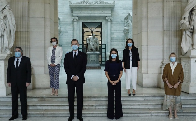 En la reunión presencial celebrada en la BNE estuvieron acompañados por el ministro de Cultura y Deporte, José Manuel Rodriguez Uribes, la subsecretaria de Cultura y Deporte, Andrea Gavela, la presidenta del Real Patronato, Soledad Puértolas y la directora de la Biblioteca, Ana Santos Aramburo. Asistieron también al encuentro de forma telemática, por videoconferencia, la directora general del libro y fomento de la lectura María José Gálvez y las académicas Carme Riera, Aurora Egido e Inés Fernández Ordoñez, miembros de la Comisión Permanente de la Biblioteca Nacional de España, una de las principales instituciones culturales que preparan su apertura al público el próximo lunes 8 de junio.