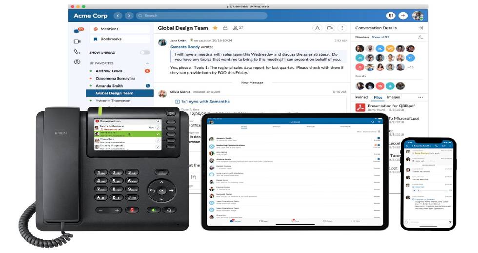 Con Unify Office de RingCentral las empresas de todos los tamaños pueden comunicarse y colaborar con facilidad utilizando las capacidades de voz, video, mensajería de equipo y fax líderes en la industria desde cualquier lugar utilizando cualquier dispositivo a través de una única solución empresarial.