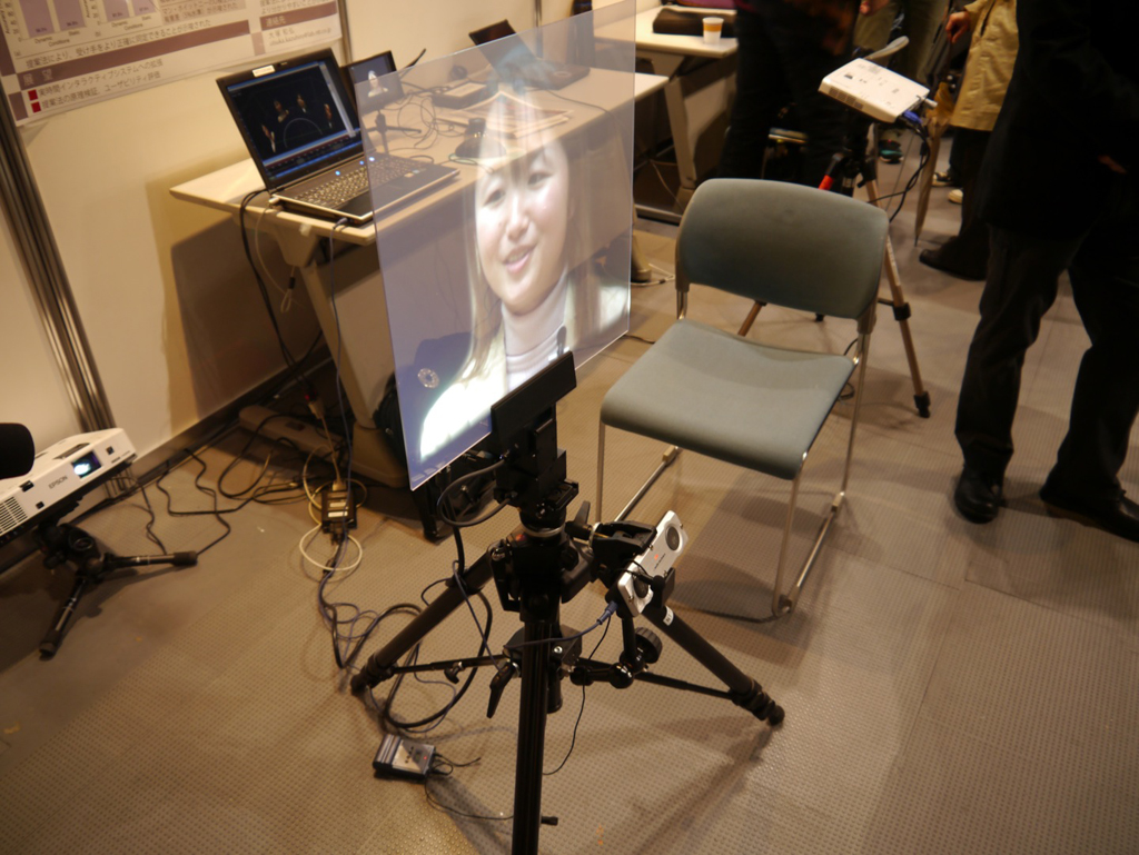 NTT Communication Science Laboratories, de Kyoto (Japón), han desarrollado un sistema de videoconferencia llamado MM-Space que permite que los movimientos de una persona se puedan representar en la otra punta del planeta. Esto se consigue con una serie de sensores y software que interpretan esos movimientos, indicando a la aplicación cuando la persona está mirando a un punto o a otro.