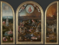 Alrededor del Carro de heno se incorporan, varios trípticos del Bosco en los que el Paraíso y el Infierno aparecen representados en las tablas laterales, aunque varíe la forma de mostrarlos. Tradicionalmente, en la tabla central se incluía el Juicio Final, como sucede en el ejemplar de Brujas. En las Visiones del Más Allá de Viena, más que la visión del infierno, resulta original –y aún sorprendente- la del paraíso, con el túnel de luz deslumbrante que atraviesan los elegidos para llegar al Empíreo.