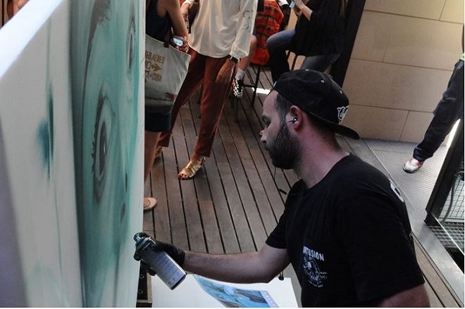 El artista gallego Mon Devane será sin duda uno de los grandes triunfadores de la Segunda Edición del Street Art & Food Festival, que se celebra del 3 al 27 de julio en el Mercado de San Ildefonso de Madrid. Mon Devane fue el encargado de inaugurar el Festival y lo hizo pintando in situ una obra que desató pasiones entre los visitantes del Mercado, tanto por la frescura de su ejecución como por su calidad.