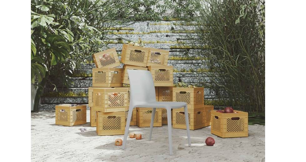 Se fabrica en plástico reciclado post consumo procedente del sector agroalimentario